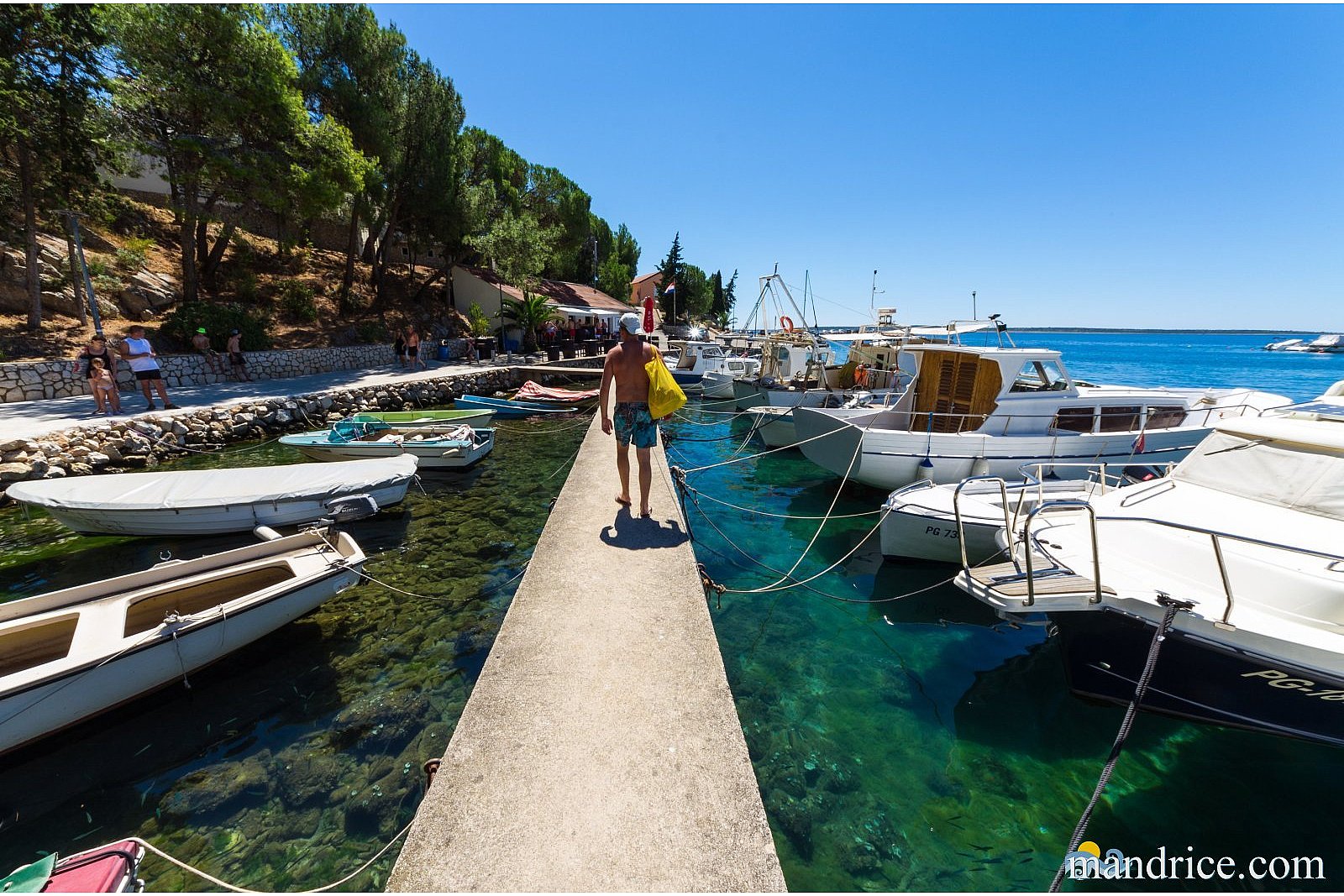 Mandre is situated on mid west coast of north Dalmatian island Pag which is connected to the shore by the bridge. Small berth and community of family houses within the deep pine forest, with inhabitants completely devoted to tourism. Therefore, in Mandre, you will find everything that you need for a pleasant family holiday. Since the town has developed in Maun Bay you will be allowed for safe berthing. Since the Island Pag has been known by its sand and pebble beaches, Mandre is very convenient for families with children. On the other hand, Novalja is the next larger tourist town, 10 km far from Mandre and it has all the facilities and characteristics of developed tourist centre, sports fields and very rich cultural programmes.